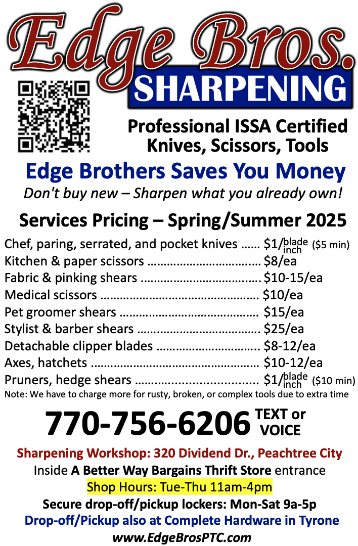 Edge Brothers in Peachtree City, GA brings razor-sharp precision to your blades. From grooming shears to clipper blades and kitchen knives, our professional sharpening service revitalizes dull edges, ensuring a clean cut every time. We also repair knife tips/edges, groomer shears, clippers (Andis, Heiniger, Wahl, Oster), and dog dryers (ECC K-9 and Double K).